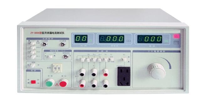 醫(yī)用泄漏電流測(cè)試儀用于測(cè)量醫(yī)用電器設(shè)備的連續(xù)漏電流和患者輔助電流的檢測(cè)試驗(yàn)設(shè)備。ZY-3005系列醫(yī)用泄漏電流測(cè)試儀是按照GB9706.1-2007(IEC60601-1:1988)《醫(yī)用電氣設(shè)備 第一部分:安全通用要求》設(shè)計(jì)、生產(chǎn)。其測(cè)試回路(MD)輸入阻抗模擬人體阻抗,符合GB9706.1-2007(IEC60601-1:1988)的要求,測(cè)試電流達(dá)5uA,并為用戶(hù)提供一個(gè)輸出電壓0~250V連續(xù)可調(diào),和最高網(wǎng)電壓的110%的電壓源,輸出的基本容量配置為300VA的隔離電源,可以滿(mǎn)足Ⅰ、Ⅱ各類(lèi)型設(shè)備進(jìn)行正常狀態(tài)下和單一故障下的對(duì)地漏電流、外殼漏電流、患者漏電流、患者輔助電流的測(cè)試。